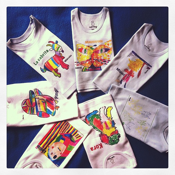 Para cada día de la semana una camisita, pero cada una tiene estampado un dibujo de su primo Emilio. Obras de arte en el cuerpo del peque. ¡No veo la hora de verlo con sus hermosas camisas!