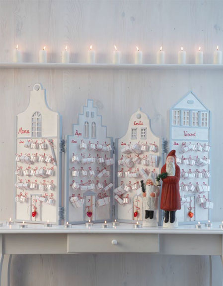 Para tod@s l@s artistas y manos creativas que leen este blog, les dejo algunas ideas de calendarios de adviento que me encontré navegando y me encantaron. Con un poco de imaginación y ayuda infantil se pueden acomodar a nuestras casas, hasta en una oficina! con el toque propio.