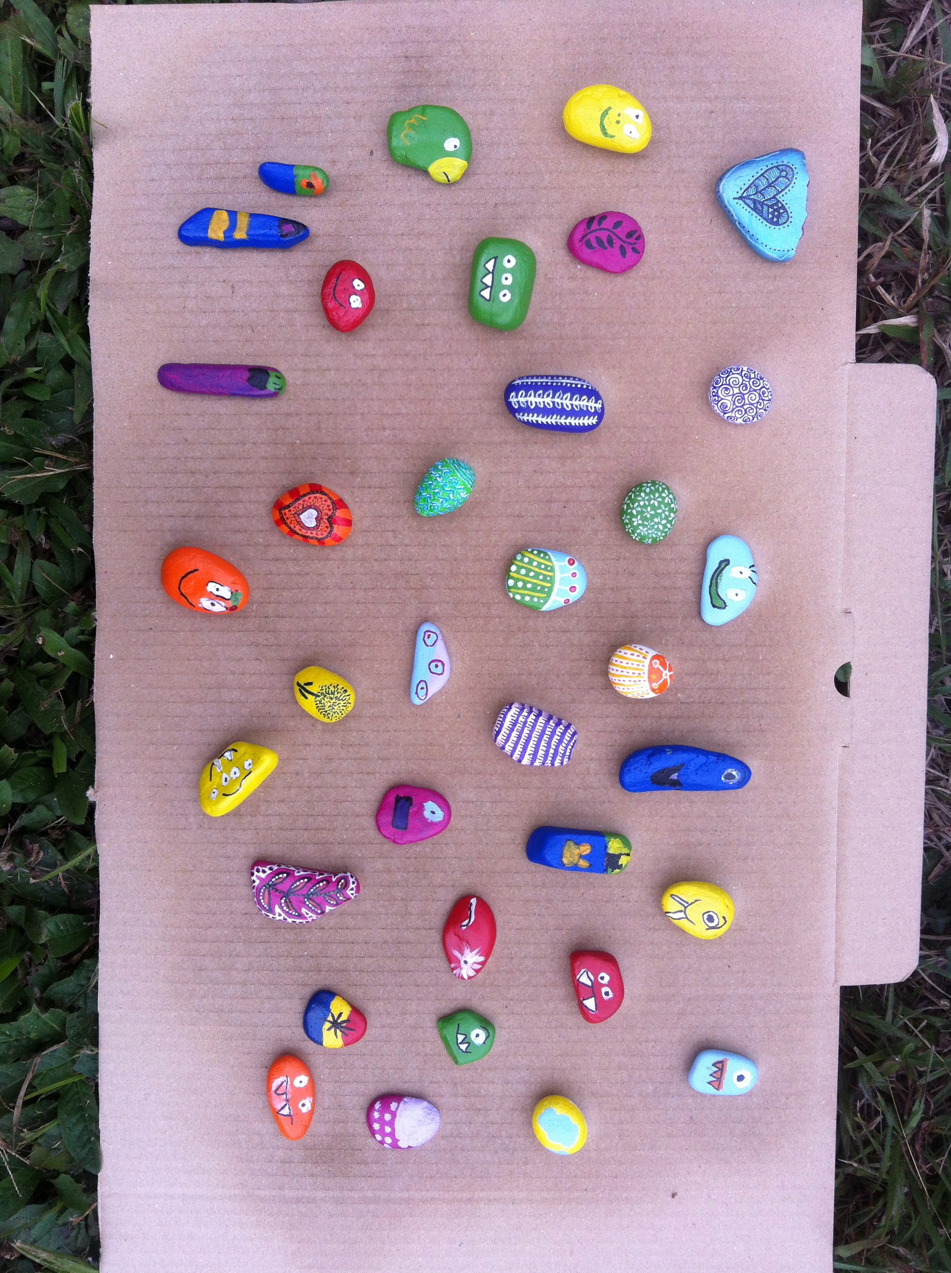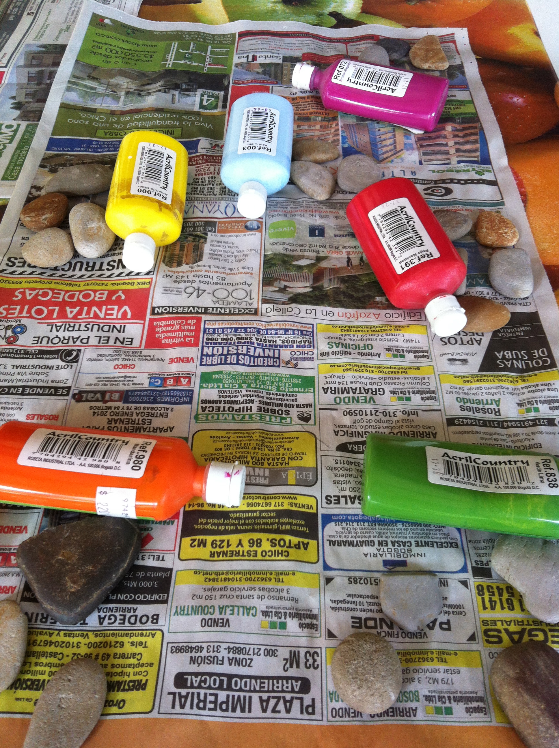 1. Buscamos rocas pequeñas y lisas, lo cual fue otra actividad porque nos fuimos a pasear cerca a la casa y a conversar mientras buscábamos por la carretera piedritas.