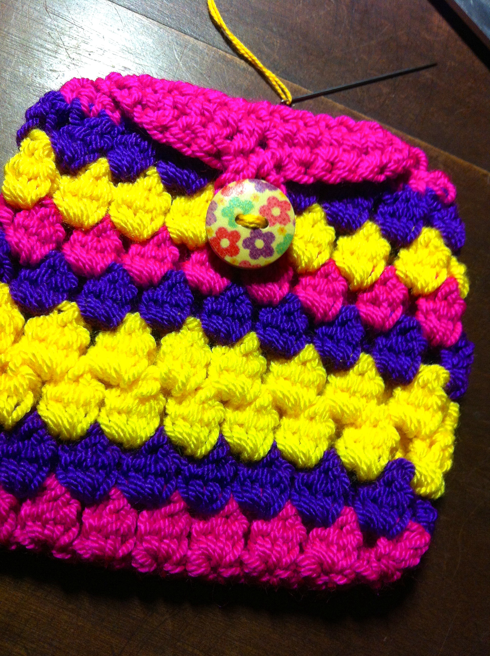 Comencé a tejer croché cuando tenía 9 años, en el colegio donde estudié la primaria nos enseñaban. Hicimos bolsas, carteras y no recuerdo que más; sólo recuerdo que cada año le regalábamos algo a las mamás 🙂