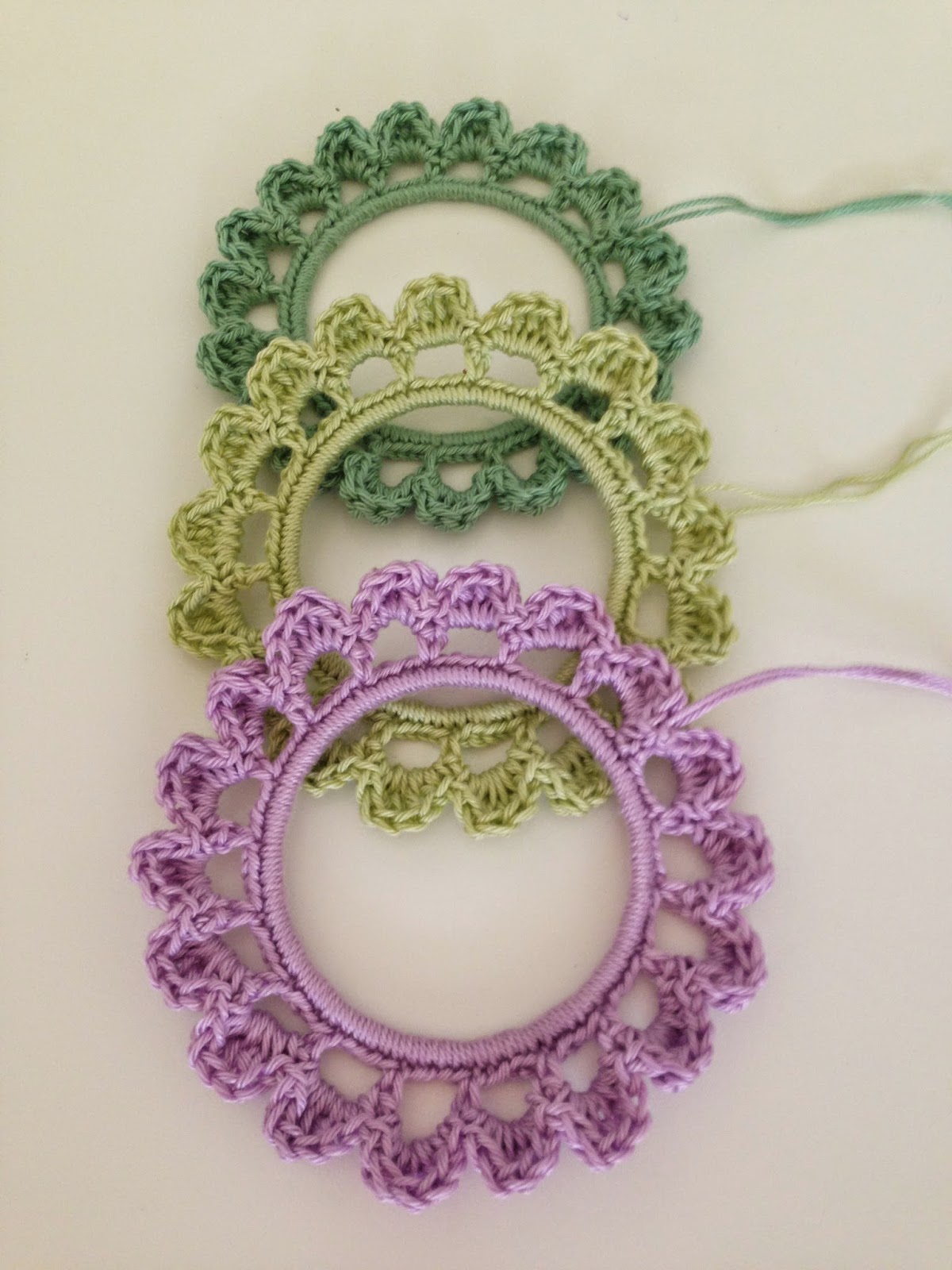 Hay otros dos tipos de marco que me encantaron y se los dejo aquí por si también quieren hacerlos. Son redondos u ovalados, y con marco sólido o sólo tejido.