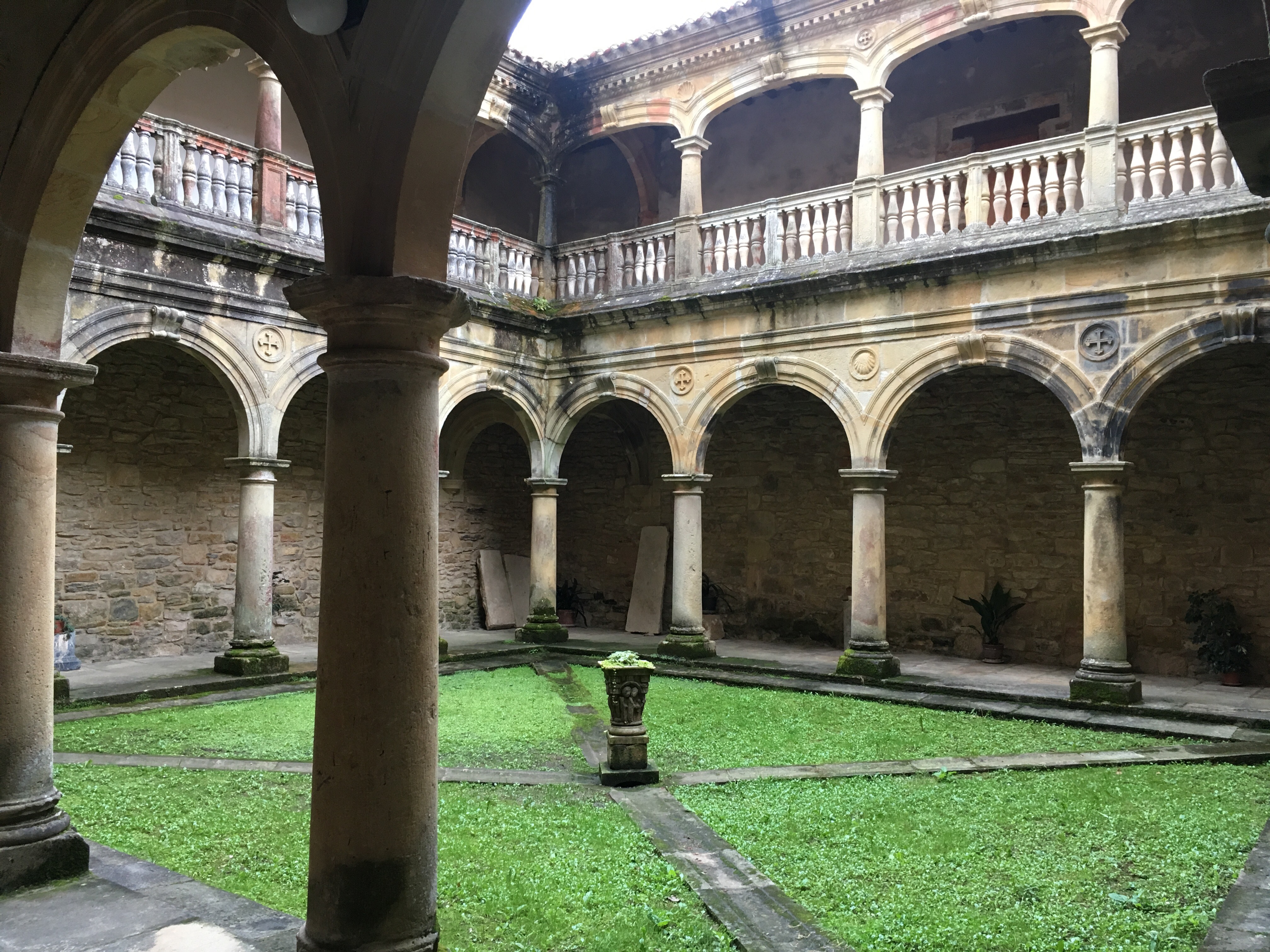 Seguimos caminando y llegamos a un Monasterio bellísimo, románico; se llama Zenarruza y queda en Ziorza. Estaba arriba de una montaña entonces las vistas fueron preciosas, y el lugar te hacía sentir de otra manera. Dani en eso es igual de sensible que yo, así que entramos al patio central que estaba abierto. Nos quedamos absortos viendo semejante construcción, y de adentro se oía una música: piano y canto… abrimos una puerta que daba a la iglesia y había como unos sacerdotes (o monjes) cantando. Fue un momento mágico, pero no quisimos molestar y cerramos.