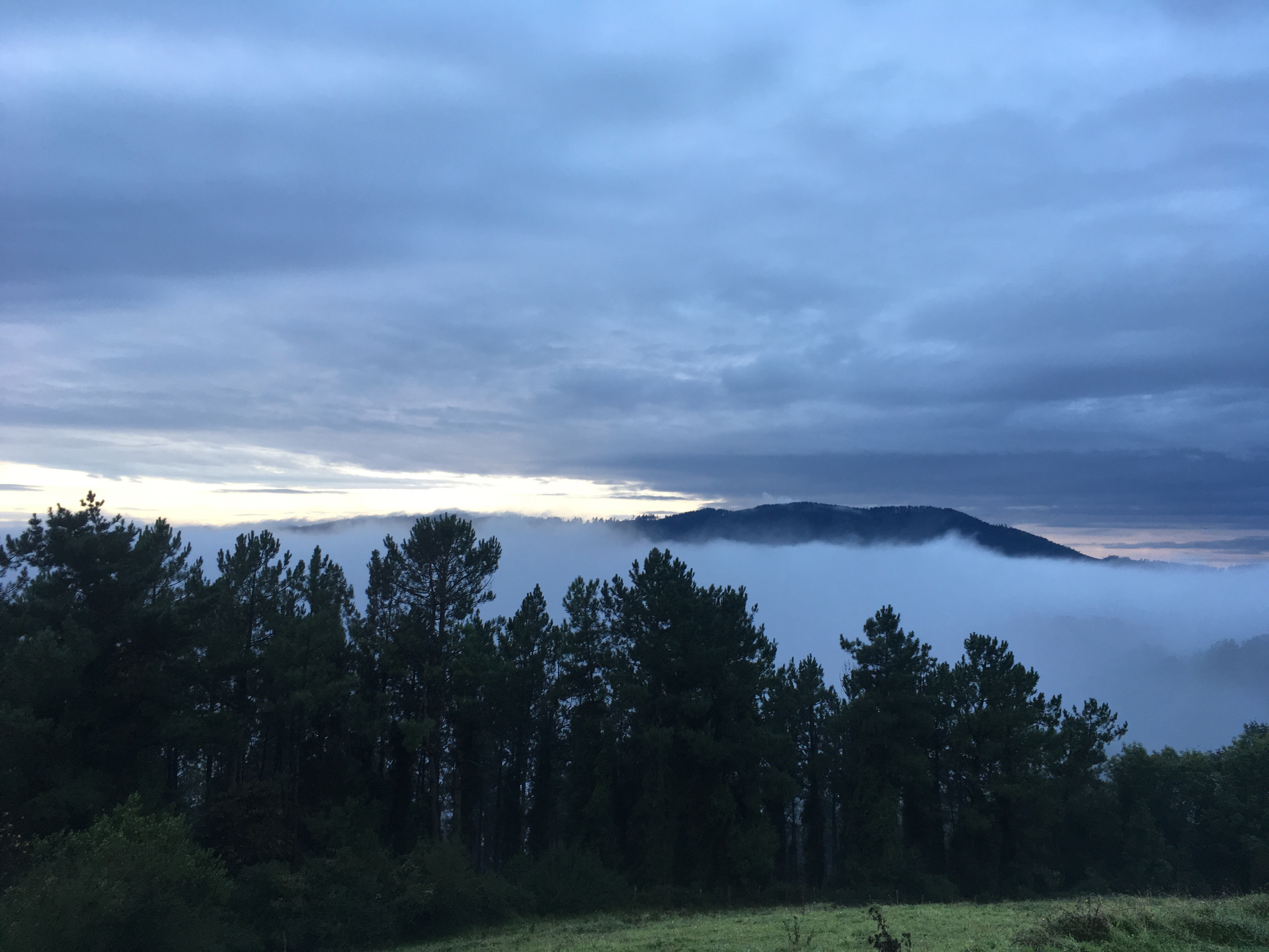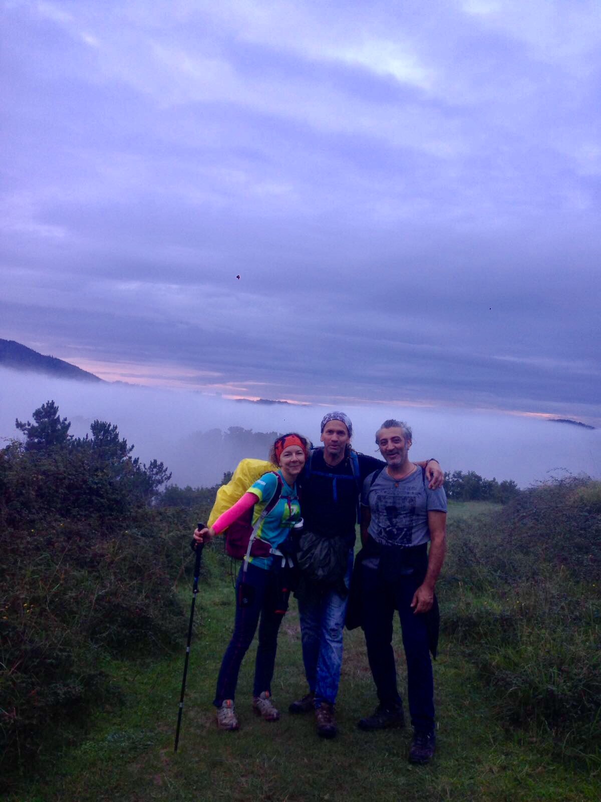 Pero volvamos a la mañana: salí con Carlos y Stefanno del hostal y la primera tanda hasta Larrabetzu, que fueron bosques preciosos tapados por la neblina, la hicimos juntos. Cuando llegamos a la cima la vista fue preciosa… cada día hay algo por lo que maravillarse 🙂