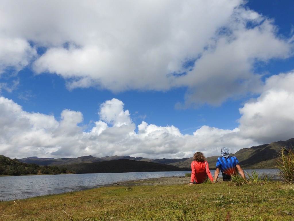 Unos 800 metros más adelante el túnel verde por el que venimos se abre y encontramos un descampado por donde podemos acercarnos a la laguna. Es la laguna de Chingaza, santuario para los indígenas que poblaron estas tierras, donde se realizaron peregrinaciones, festejos y ofrendas. Nosotros también traemos la nuestra: días atrás, en casa, tejí dos pulseras trenzadas en yute como símbolo de nuestra unión, amor, amistad, gratitud y vida juntos.