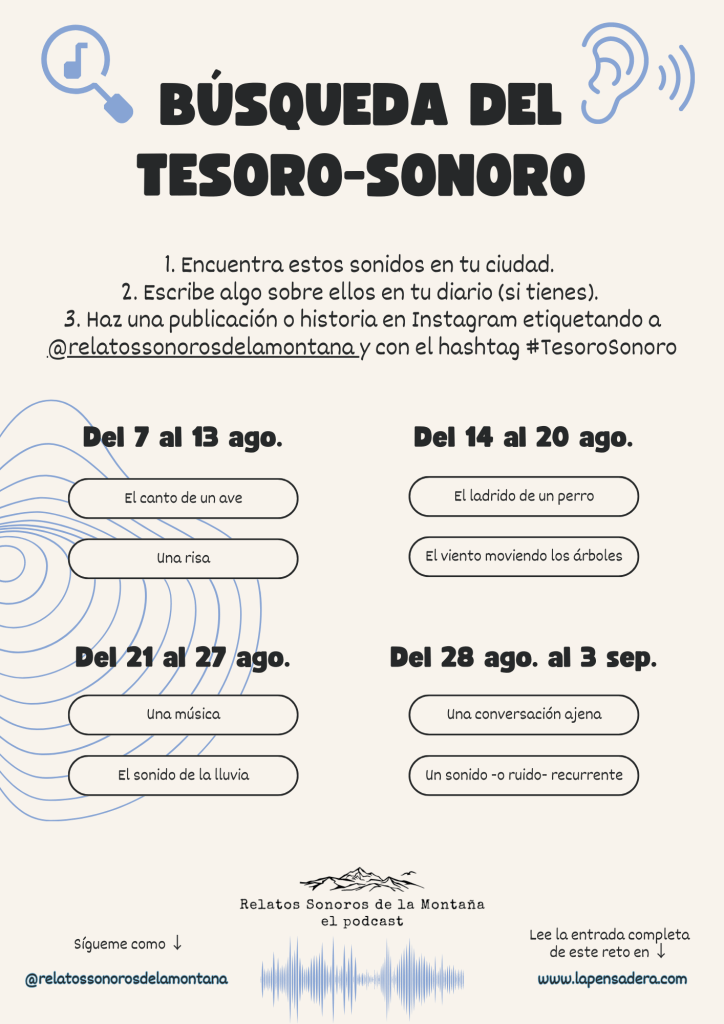 Te invito a que hagas una publicación o historia en Instagram, etiquetando a @relatossonorosdelamontana (te dejo el enlace por si aún no me sigues) y usando el hashtag #TesoroSonoro.