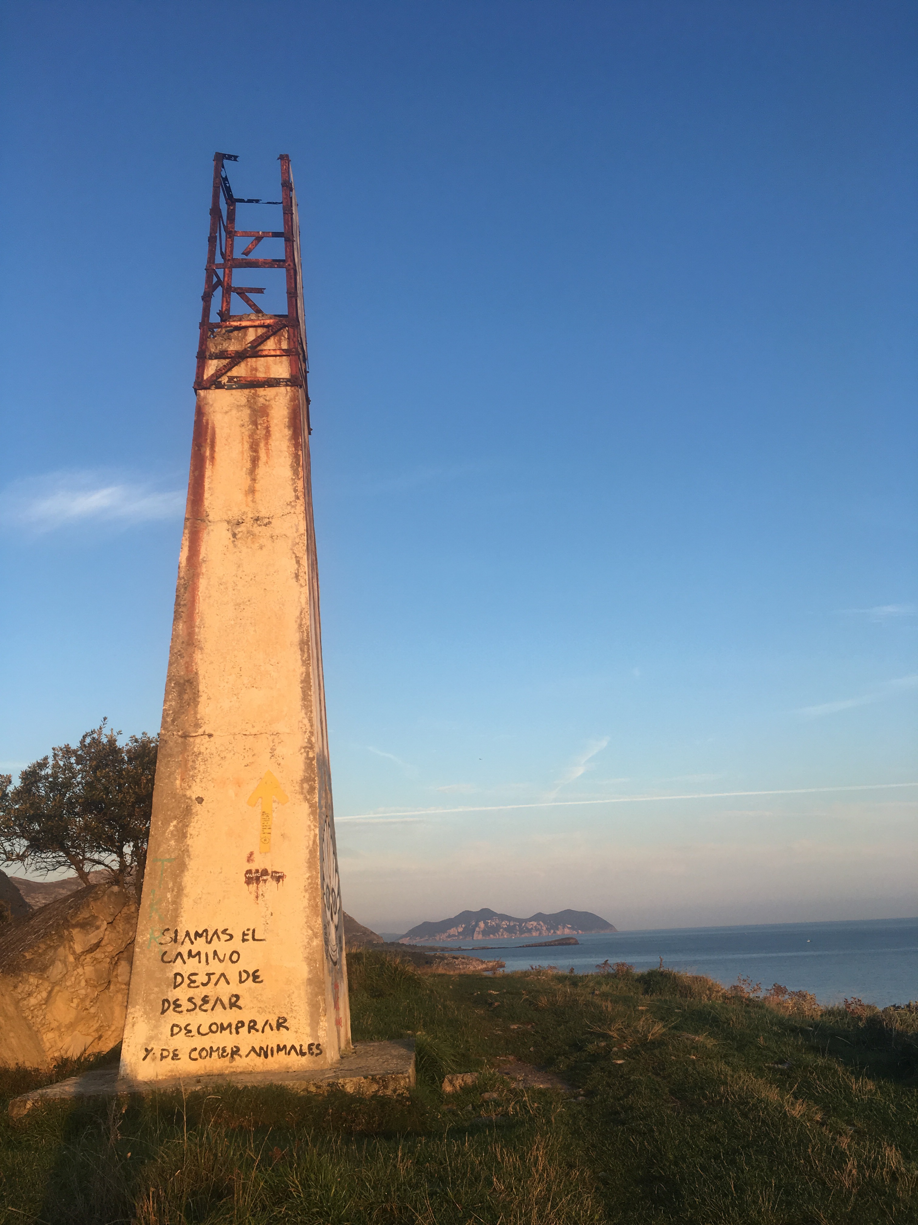 Esta mañana desayunamos y tomamos una parada del tren -porque toca, no se puede ir por la carrilera, sino el desvío es de kilómetros-. En Mogro nos bajamos y a caminar. Esta etapa fue de tooooodo asfalto. Las otras por lo menos tenían mar, pero bueno. Esta fue más corta y el último tramo con vistas verdes, eso me gustó.