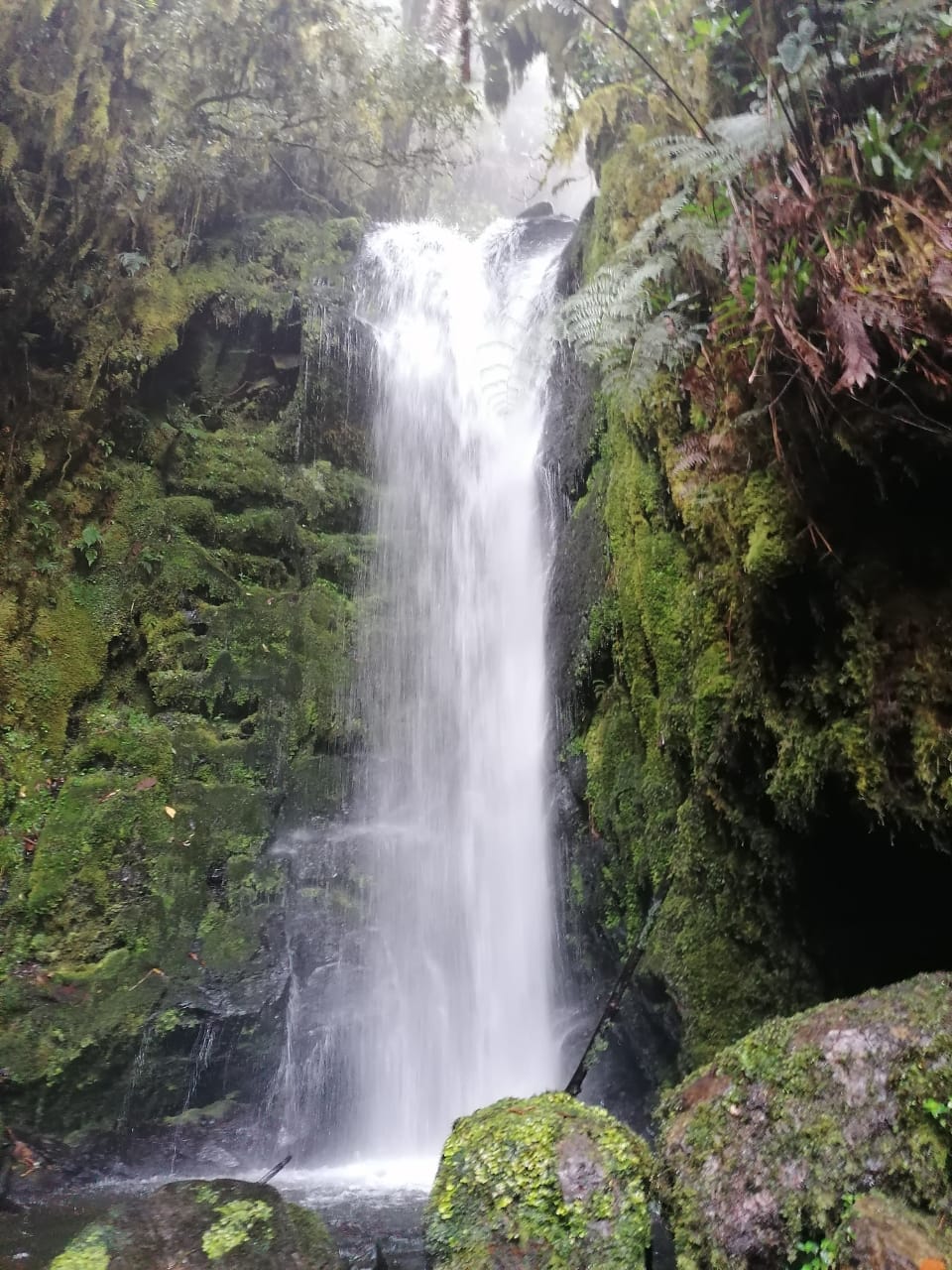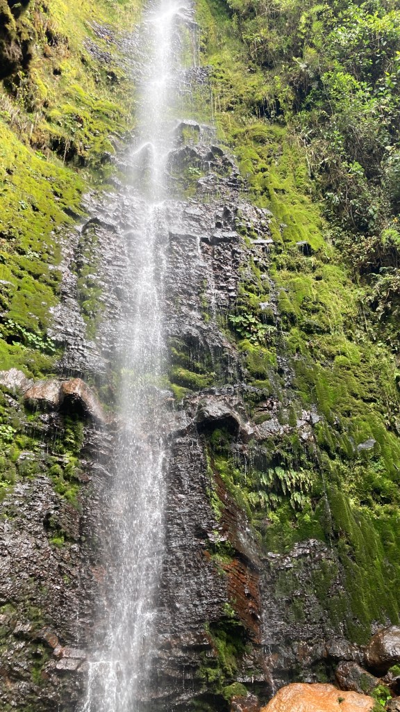 Al descender, nos encontramos con la cascada de la quebrada Calostro, que es la más alta y más cercana a la carretera, por lo que es más fácil de acceder a ella. Pero no por eso dejar de ser impresionante y muy hermosa.