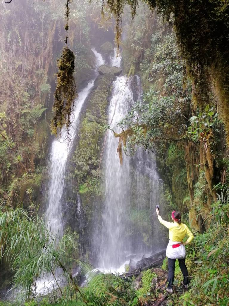 Volvimos Dani y yo. Nos habíamos quedado con las ganas de encontrar las cascadas. Ya no hacía el mismo día azulado, sino que amaneció muy frío, lluvioso y nublado… por lo que casi casi que nos regresamos, pensando que nos llovería todo el camino y pasaríamos mucho frío, pero afortunadamente seguimos y disfrutamos nuevamente de la montaña, porque es allí donde definitivamente nos sentimos mejor.