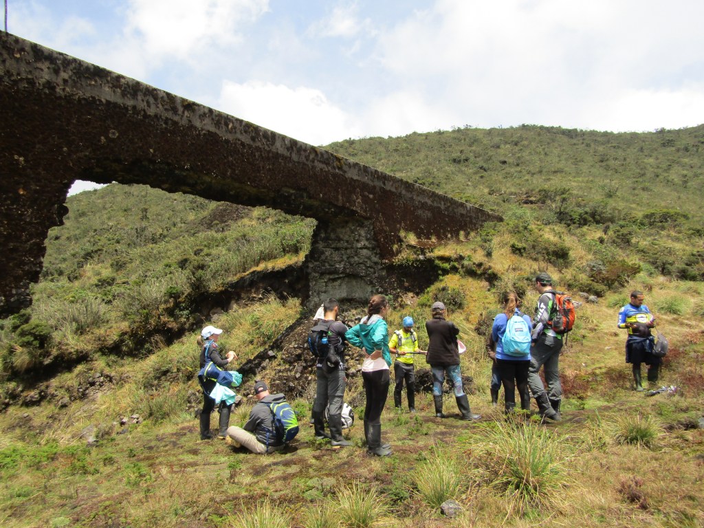 Caminamos suave, caminamos lento. De pronto, encima de nuestras cabezas vemos aparecer una estructura antigua, como un puente, como un acueducto romano. ¿Qué puede ser? se preguntan todos. Esperamos a que se reúna el grupo, tomen aire, hacemos un círculo y Mardoqueo nos cuenta.