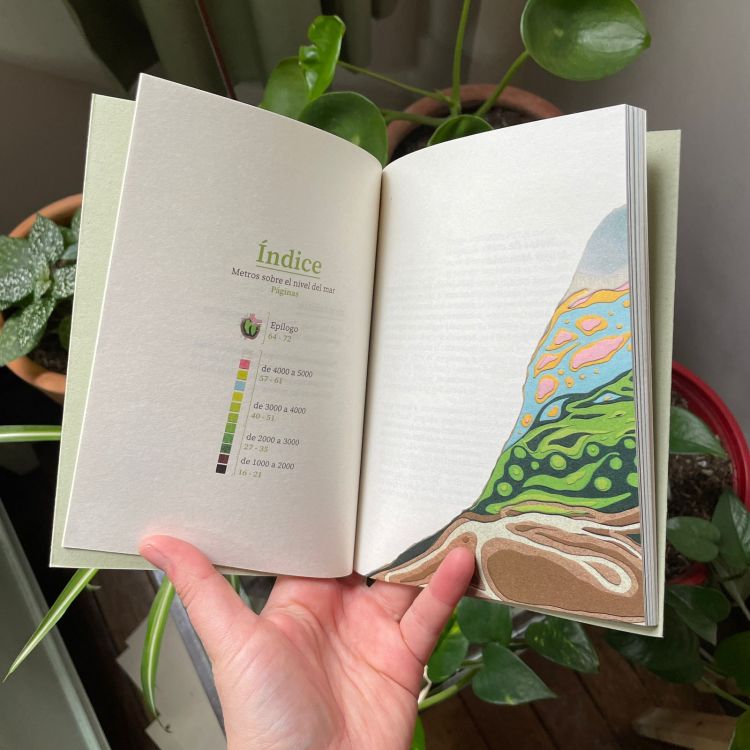El libro está dividido en cuatro secciones, que a su vez están relacionadas con las alturas de las montañas. Arranca en los 1000 msnm y va ascendiendo hasta llegar a los 5000 msnm. Cada sección tiene una fotografía mía, intervenida en técnica de collage por Giannina, amiga y artista y Laura, la editora.